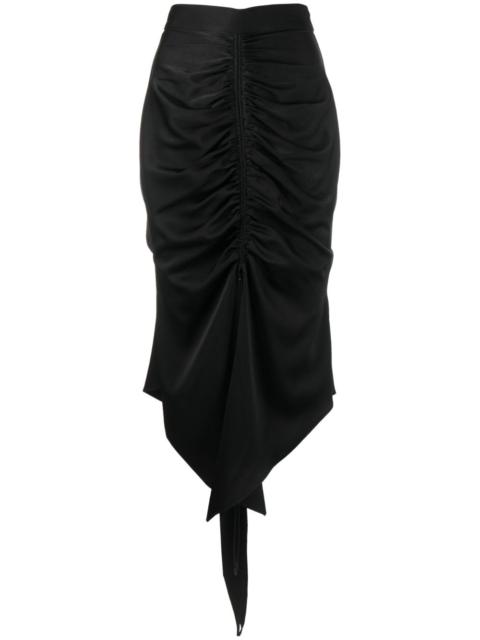 Asymmetric Strapless Satin Crepe Midi Dress pink