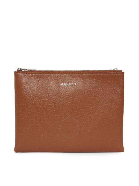 Alexander Mcqueen Ladies Pecan / Silver Logo-Plaque Clutch