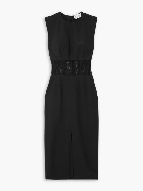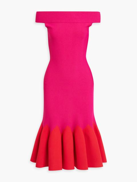 Off-the-shoulder two-tone pointelle-knit midi dress