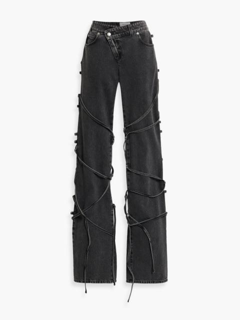 Asymmetric lace-up mid-rise straight-leg jeans