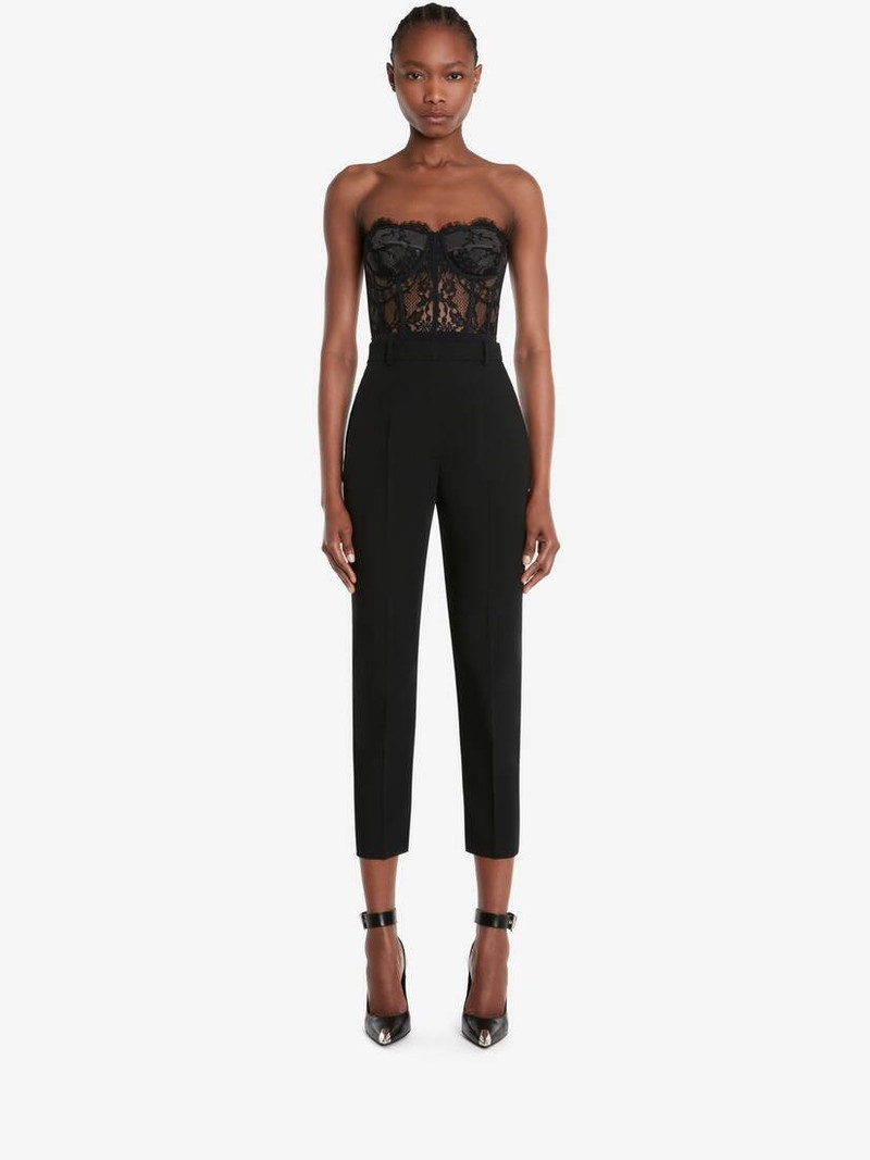 Explore the cutting-edge style of Alexander McQueen pants, a standout feature in our exclusive lineup of women's clothing. Each pair of pants from Alexander McQueen showcases a blend of bold innovation and sophisticated craftsmanship, ideal for the modern woman who values both aesthetic and functionality.