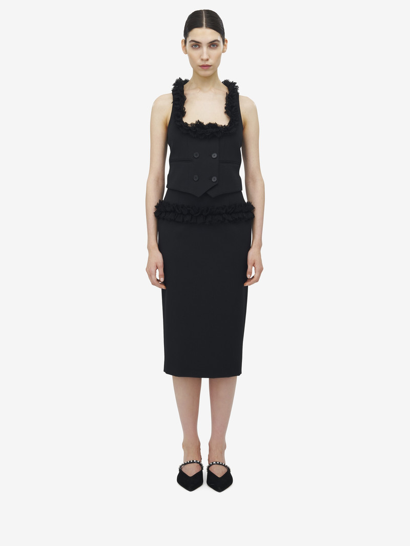 Elevate your wardrobe with Alexander McQueen skirts, an essential addition to our exclusive range of luxury women's clothing. Each skirt from Alexander McQueen showcases the designer's unique blend of dramatic flair and meticulous craftsmanship, perfect for those who celebrate bold fashion statements and intricate detailing.