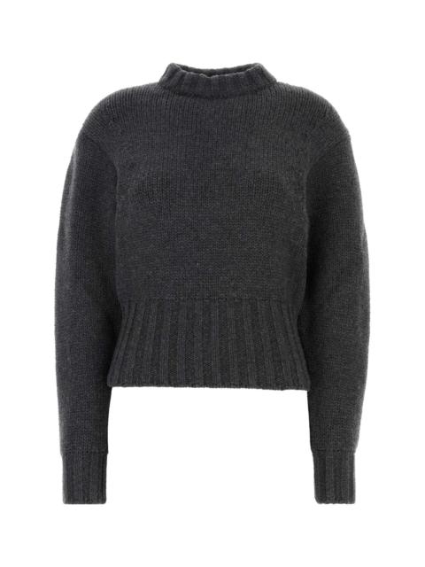 Alexander Mcqueen Women Melange Dark Grey Stretch Wool Blend Sweater