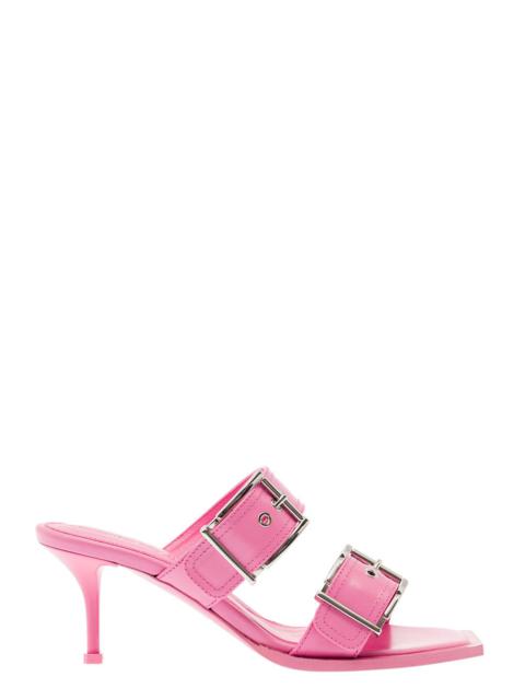 Alexander Mcqueen Women 'Punk' Pink Sandals With Double Strap And Metal Buckles In Leather Woman