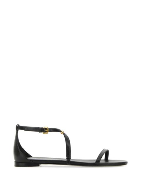 Alexander Mcqueen Women Black Sandals With Brogue T-Buckle Decorative Strap In Leather Woman