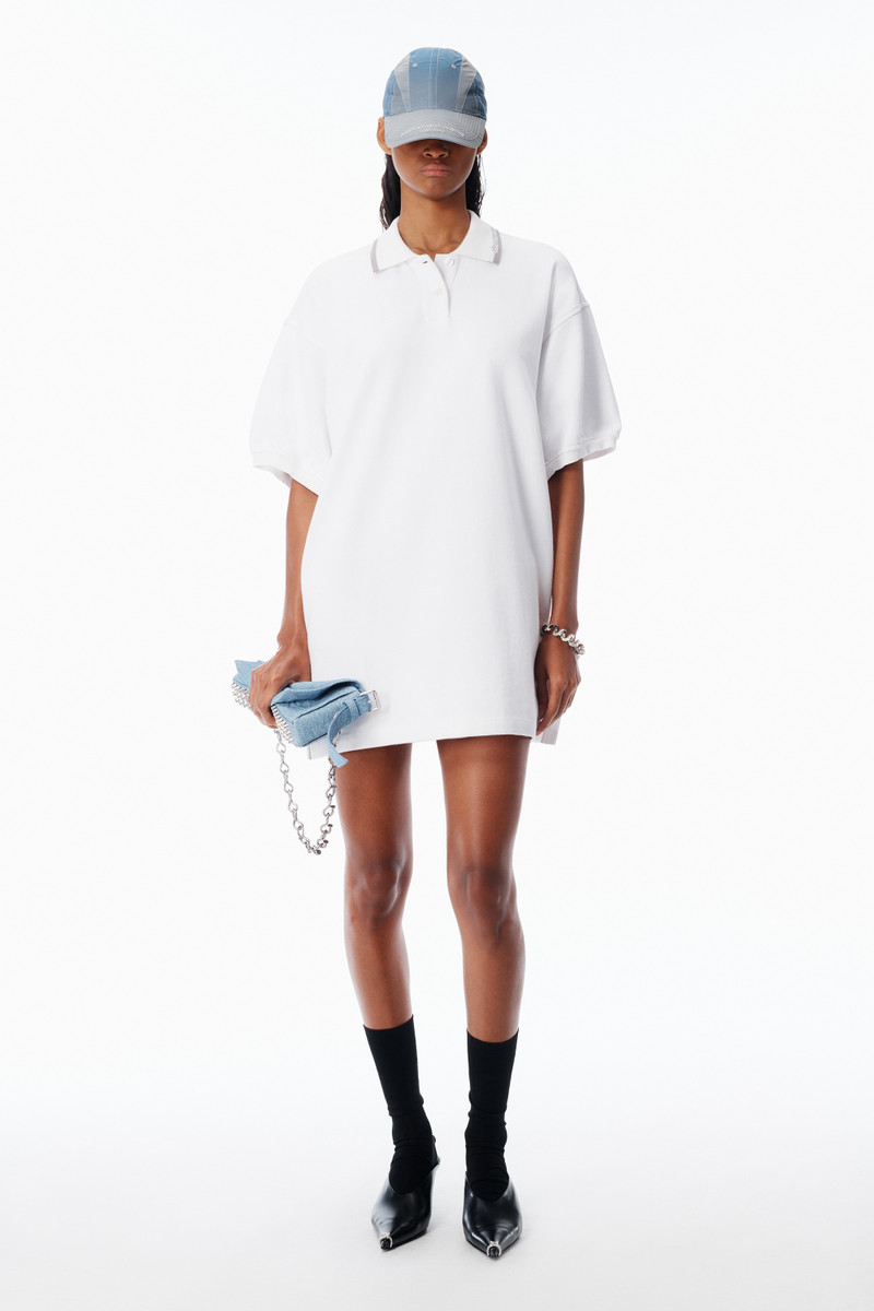 - Alexander WangBlack Crystal Hotfix Long-Sleeve Polo Dress