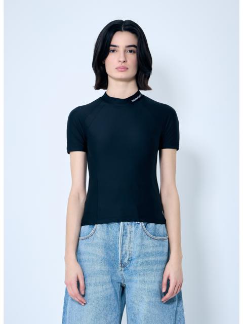 Alexander Wang Black Mock Neck Short Sleeve Ribbed Knit Top