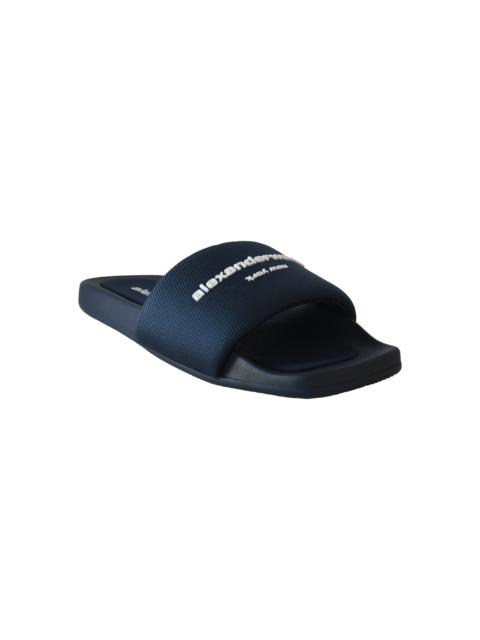 Alexander Wang Logo Print Textured Fabric Slides Blue