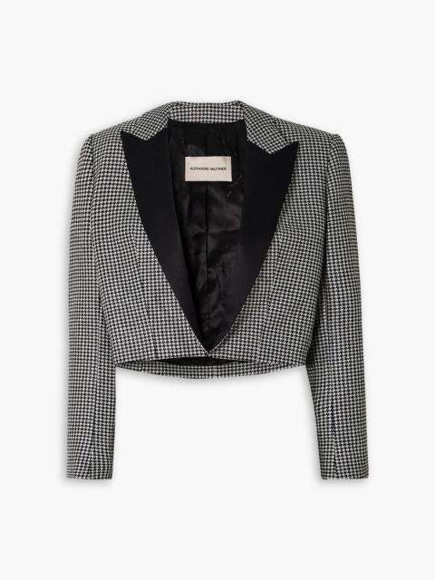 Cropped satin-trimmed metallic houndstooth wool-blend blazer