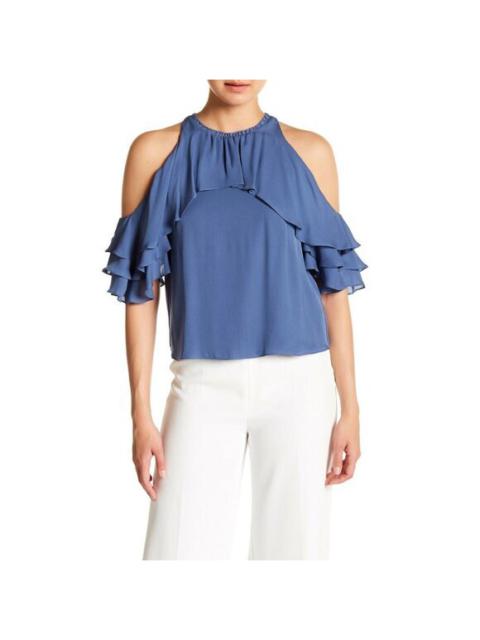Alice + Olivia Idalla Blue Silk Top Blouse Cold Shoulder Ruffle L NWT