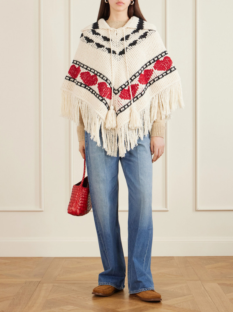 Faune Fringed Jacquard-knit Cotton Poncho