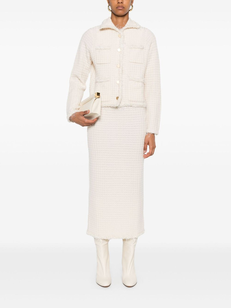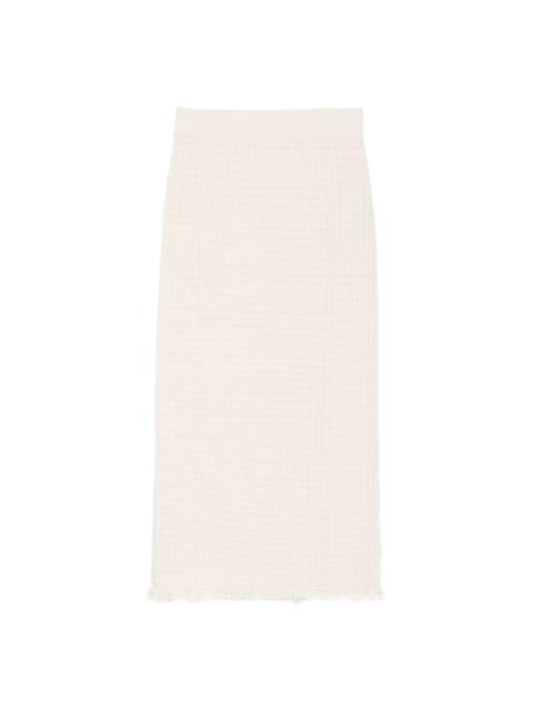 textured frayed-hem midi skirt