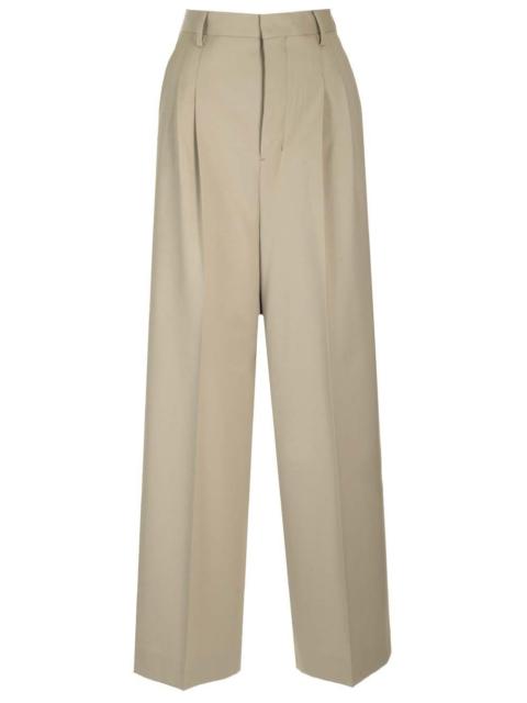 Ami Paris Wide Lime-Coloured Wool Trousers Women