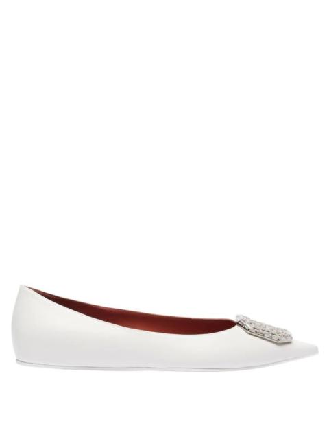 Amina Muaddi Nappa White Camelia Ballet Flats