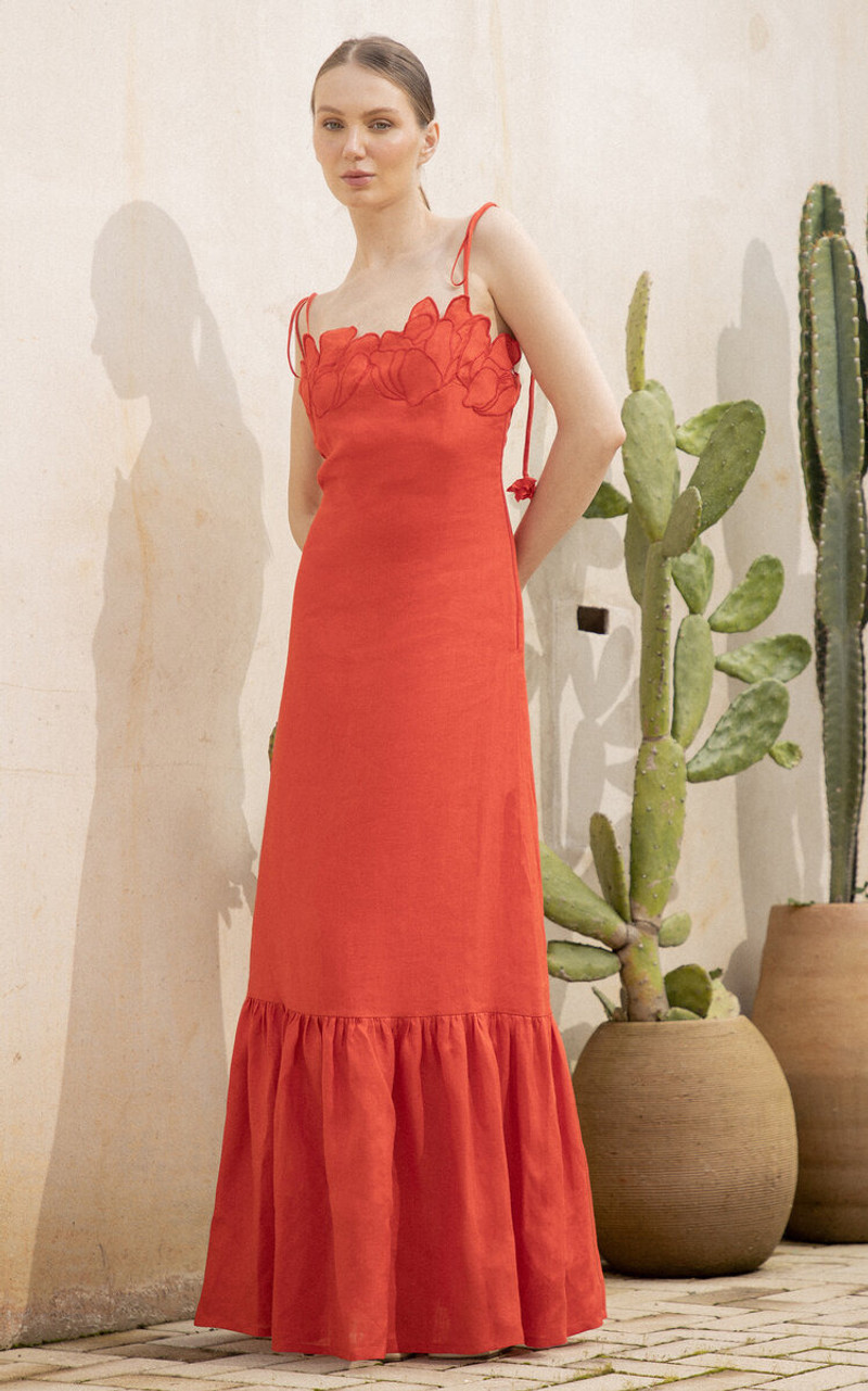 Mar Caribe Fringed Linen Maxi Dress ivory
