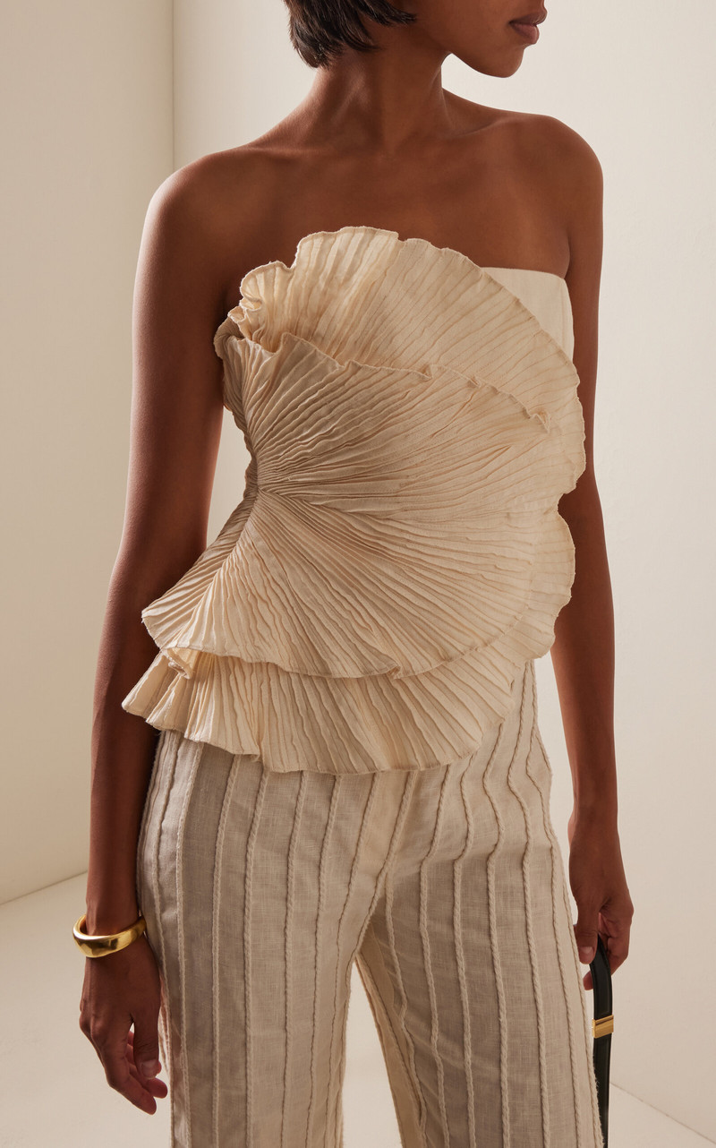 Amapolas pleated linen bustier top Beige