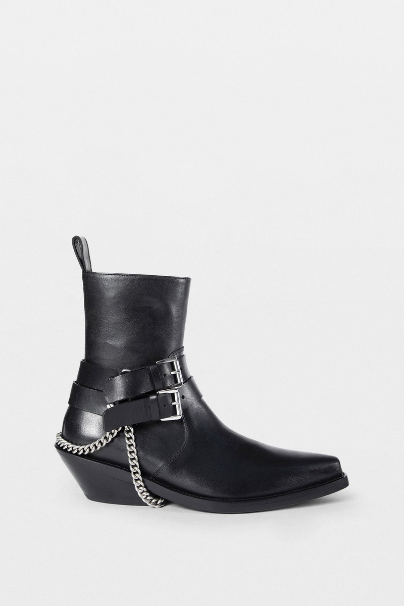 Step into sophistication with Ann Demeulemeester boots, a standout within our exclusive range of designer women's shoes. Each pair of Ann Demeulemeester boots exudes a blend of edgy elegance and modern femininity, crafted for those who value superior craftsmanship and unique style.