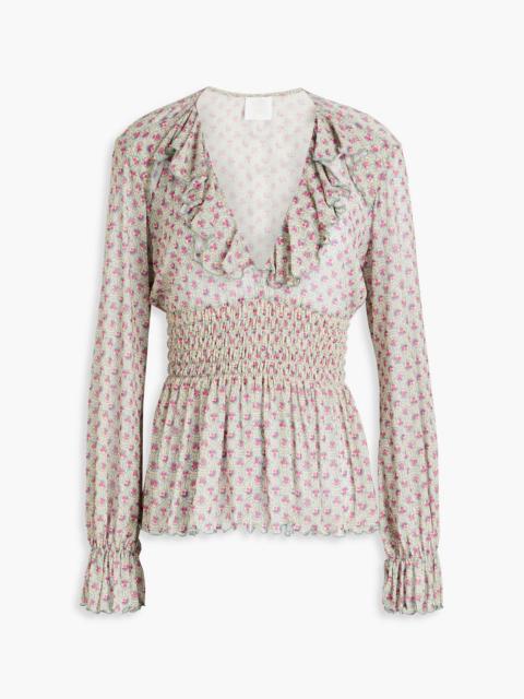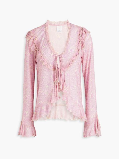 Ruffled printed stretch-mesh top