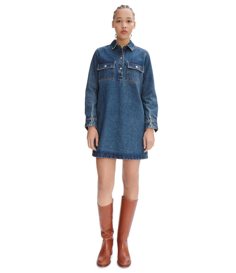 Explore the minimalist charm of A.P.C. dresses, a standout in our women's clothing collection. A.P.C. delivers timeless designs with clean lines and effortless sophistication, ideal for those who appreciate understated elegance and high-quality craftsmanship. Indulge in our handpicked assortment of dresses that bring a chic Parisian flair to your wardrobe. Each piece reflects the brand's commitment to simple yet refined aesthetics, ensuring you stay stylish and modern. Shop our exclusive collection for the latest in designer fashion, with selections updated regularly to offer you the best in luxury apparel.