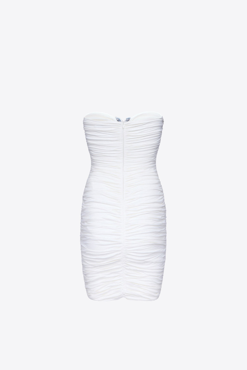 CRYSTAL FLOWER DRAPED STRAPLESS MINI DRESS