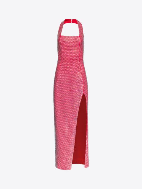 CRYSTAL EMBELLISHED HALTER SLIT GOWN