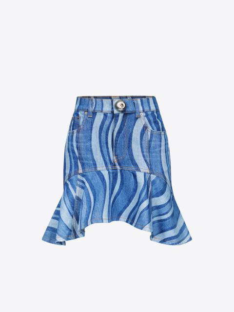 HEART PRINTED DENIM MINI SKIRT