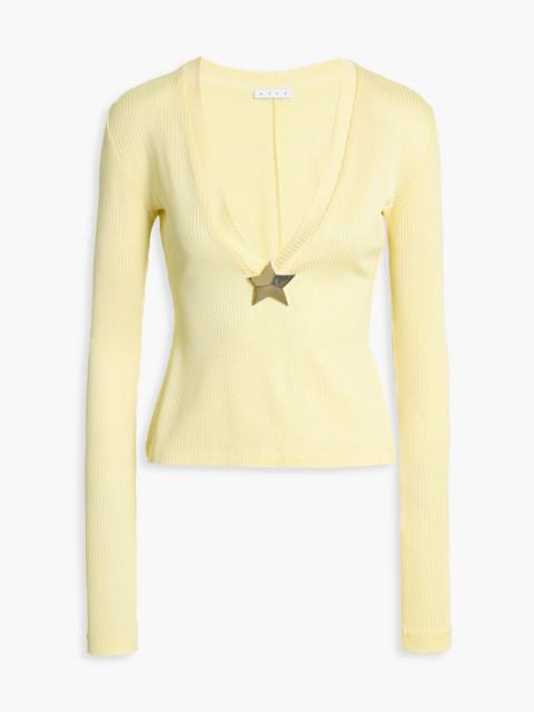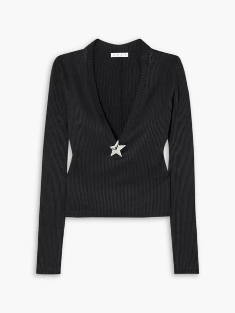 Embellished ribbed jersey top
