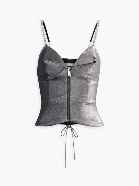 Lace-up crystal-embellished metallic twill top