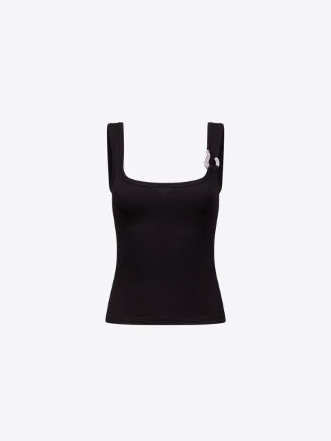 DISTRESSED CRYSTAL BOW HALTER TOP