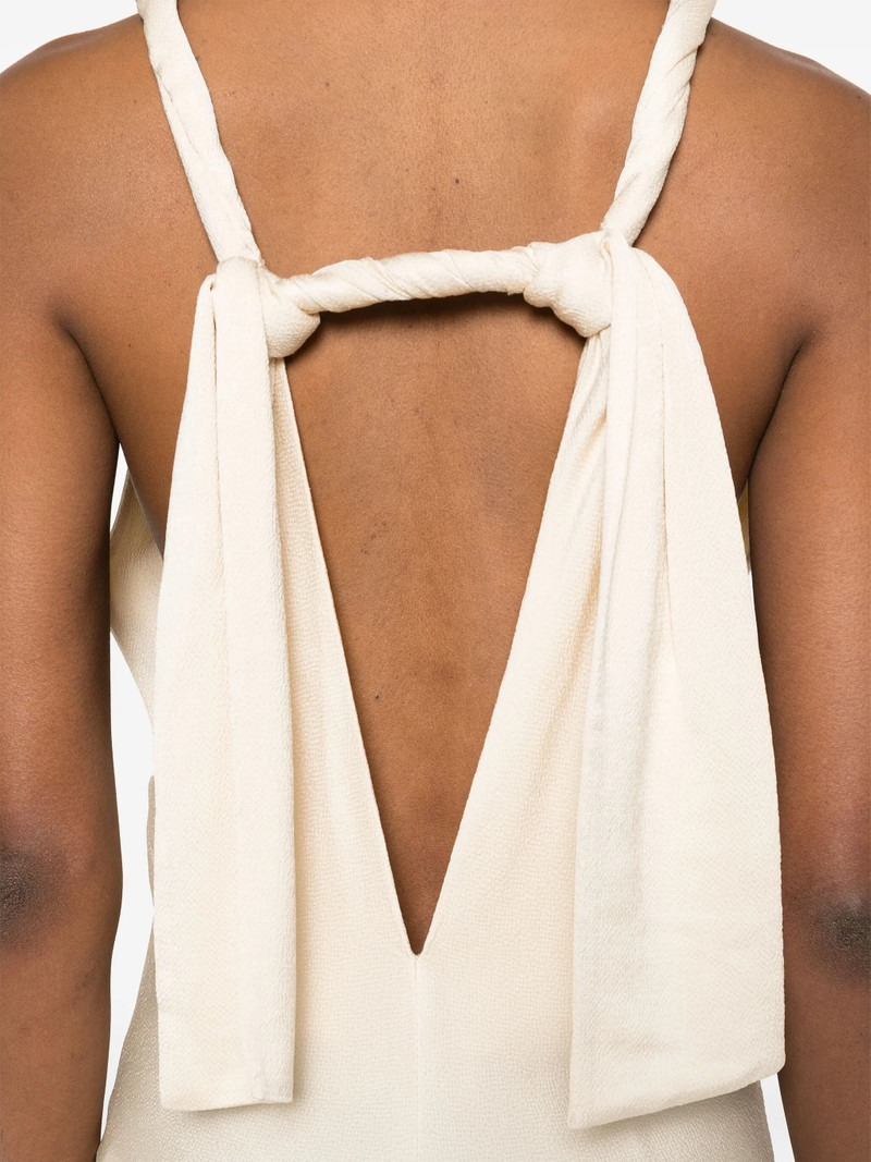 asymmetric-neckline midi dress