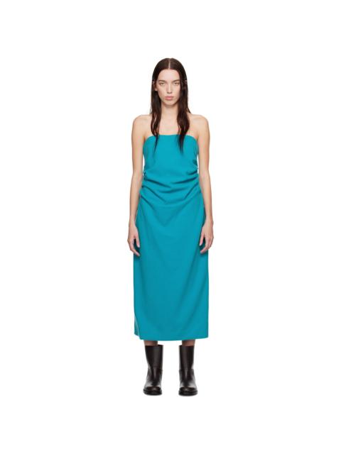 Blue Brushed Super Fine Wool Flannel Midi Dress