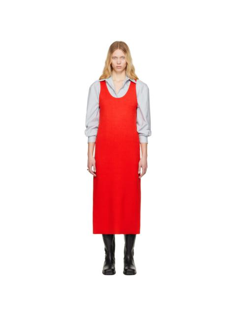 Red Cotton Silk Stretch Knit Midi Dress