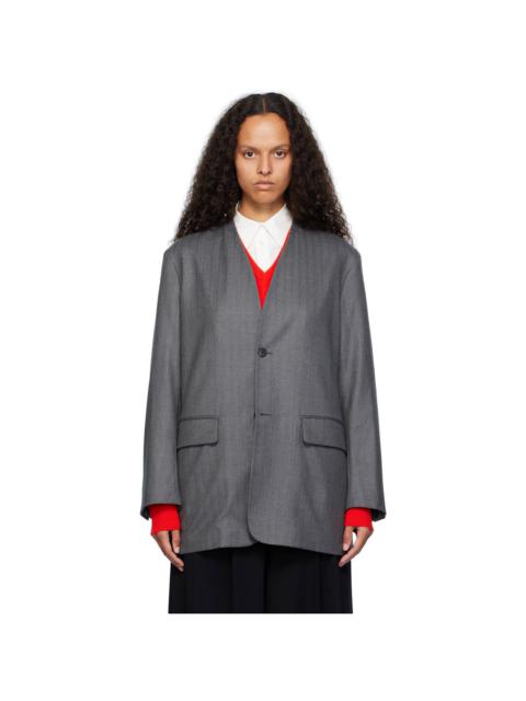 - AURALEEGray Wool Fulling Flannel Stripe Blazer