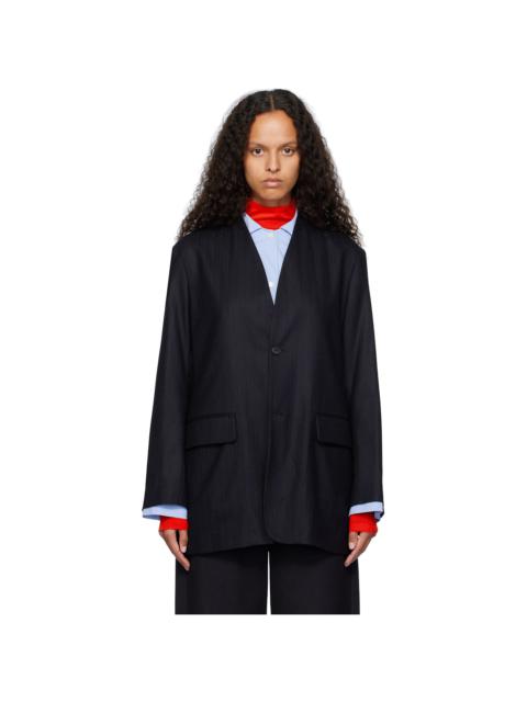 - AURALEENavy Wool Fulling Flannel Stripe Blazer