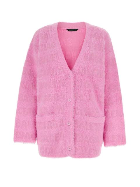 Balenciaga Women's Allover Logo Pink Wool Cardigan Size XS