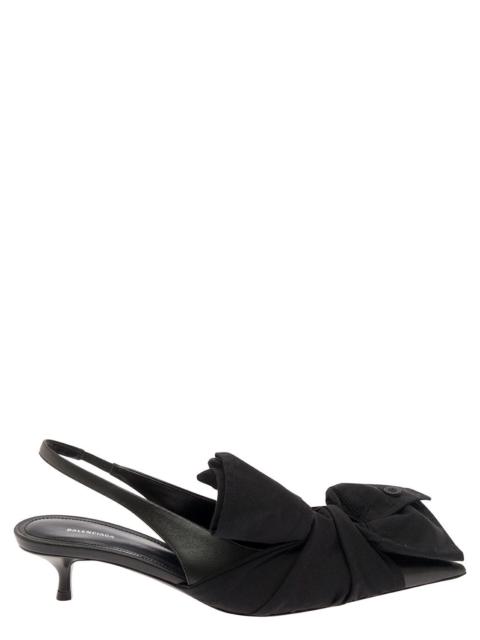 Balenciaga Women Black Slingback Pumps With Knot Detail In Leather And Cotton Woman