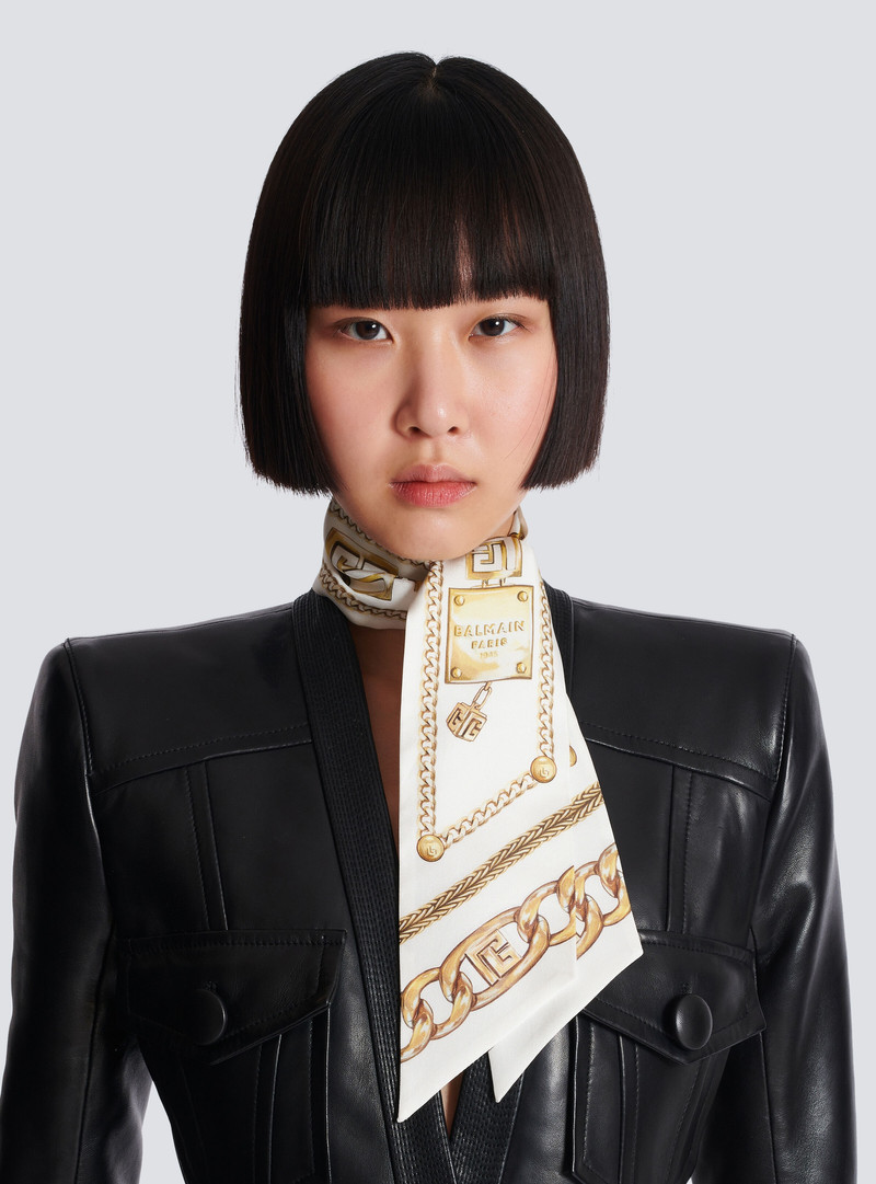 Elevate your accessory collection with Balmain scarves, an exquisite offering from our luxury women's accessories range. Each Balmain scarf is meticulously crafted to blend avant-garde design with timeless elegance, perfect for adding a chic touch to any outfit.