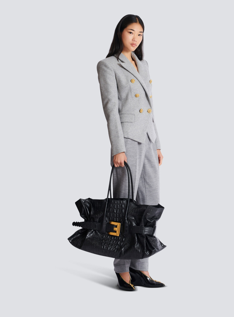 Step into the world of Balmain bags, where the top handles and totes for women redefine luxury and function. Each Balmain creation showcases impeccable craftsmanship and bold design, making a statement of elegance and power. Explore our handpicked selection of Balmain's top handles and totes, designed to suit the needs of the modern, fashion-forward woman.
