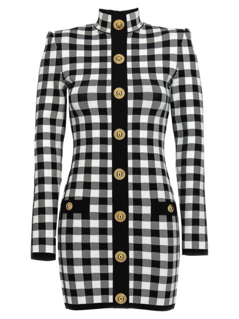 Balmain Women Buttoned Halterneck Tweed & Satin Dress