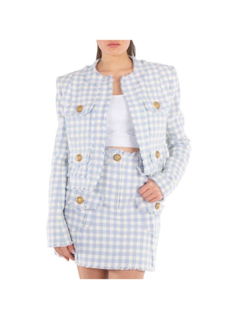 Balmain Vichy Cropped Tweed Jacket
