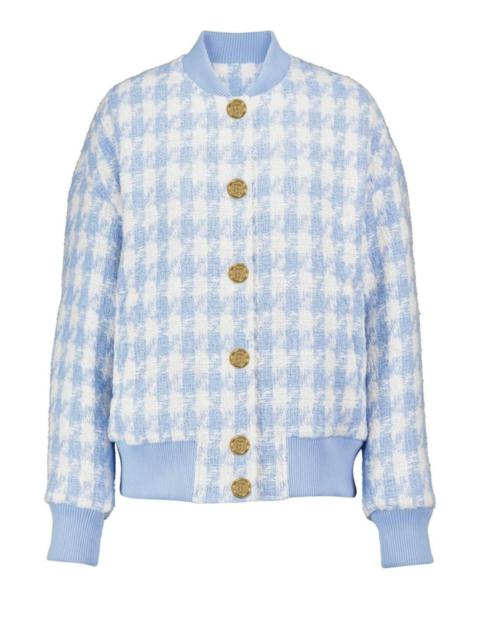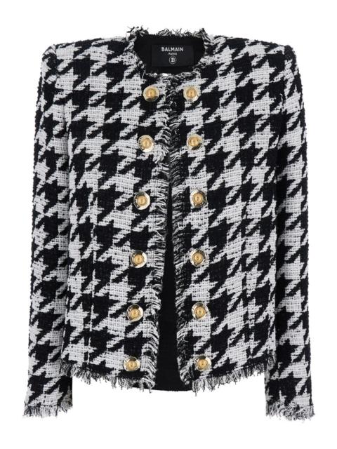 Balmain Women 'Spencer' Black And White Jacket With All-Over Check Motif And Fringed Hem In Cotton B