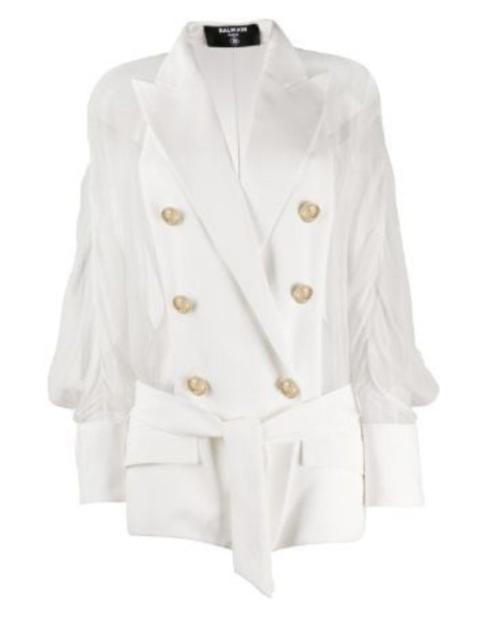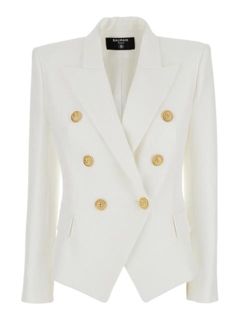 Balmain Women White Double-Breasted Jacket With Peak Lapels And Logo Buttons In Fabric Women