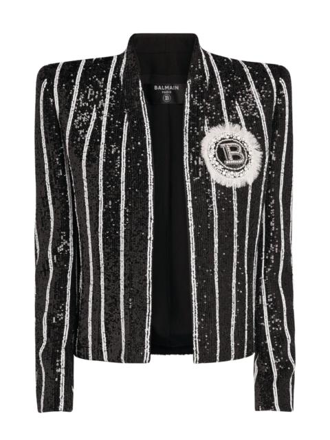 Balmain V-Neck Striped Sequinned Jacket