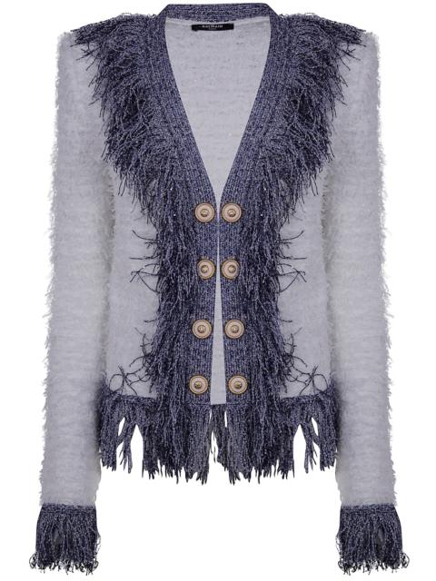 Balmain Women Collarless Glittered Fringed Tweed Jkt