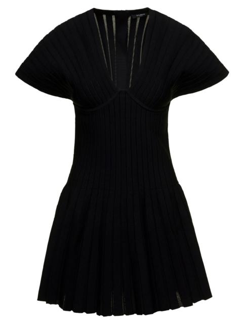 Balmain Women Black Pleated Mini Dress In Viscose Woman