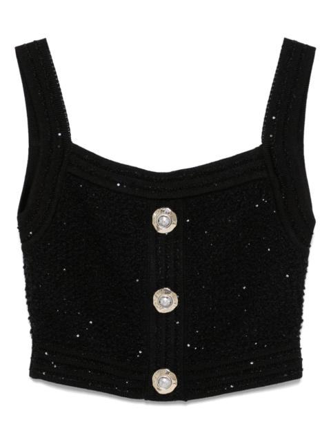 Balmain Embellished Logo Tweed Crop Top