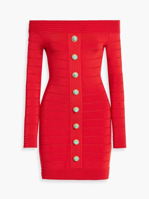 Off-the-shoulder stretch-knit mini dress