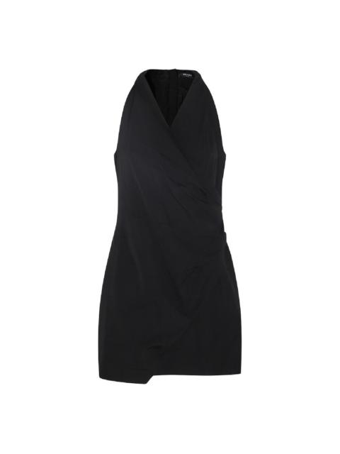 Off-the-shoulder embellished ruched jersey and cady mini dress