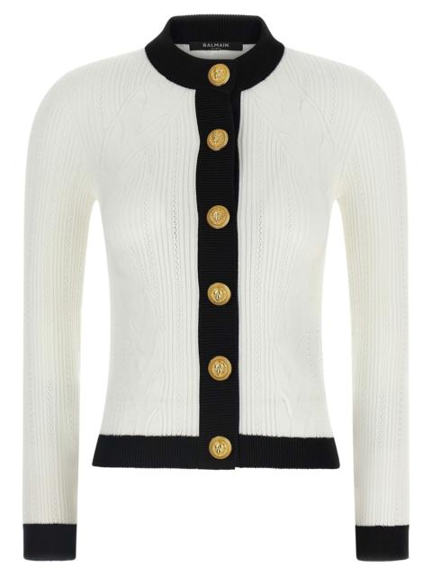 Balmain Women Grey Sweater With Weap Effect And Wide Revers In Wool Woman