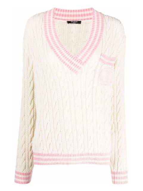 Wool-Blend Cable Knit Sweater With Patch
